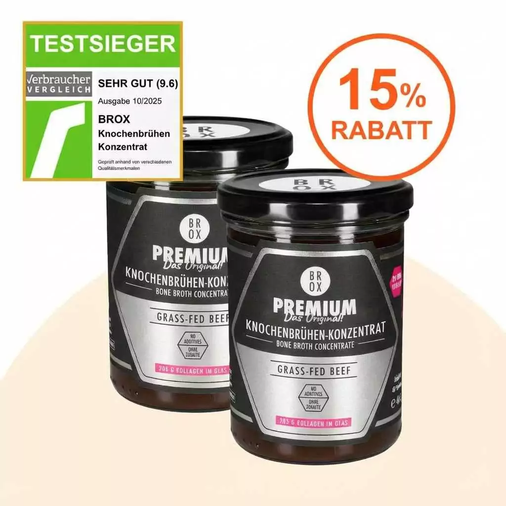 Brox tastes like real, savoury bone broth – mild, flavourful and natural. No artificial flavourings, no MSG, no additives. Many customers describe the taste as "just like grandma used to make", only without 24 hours of cooking time.